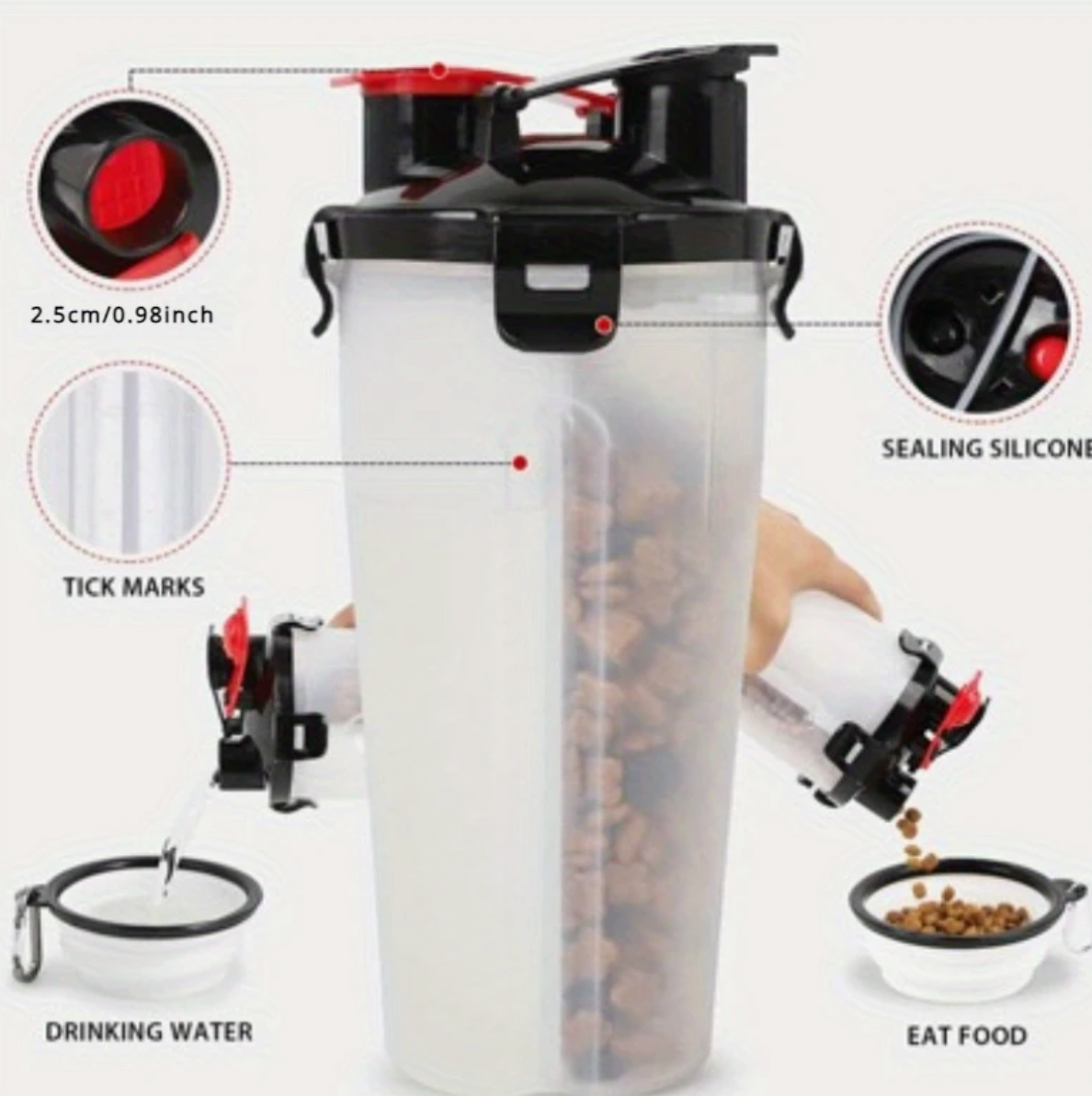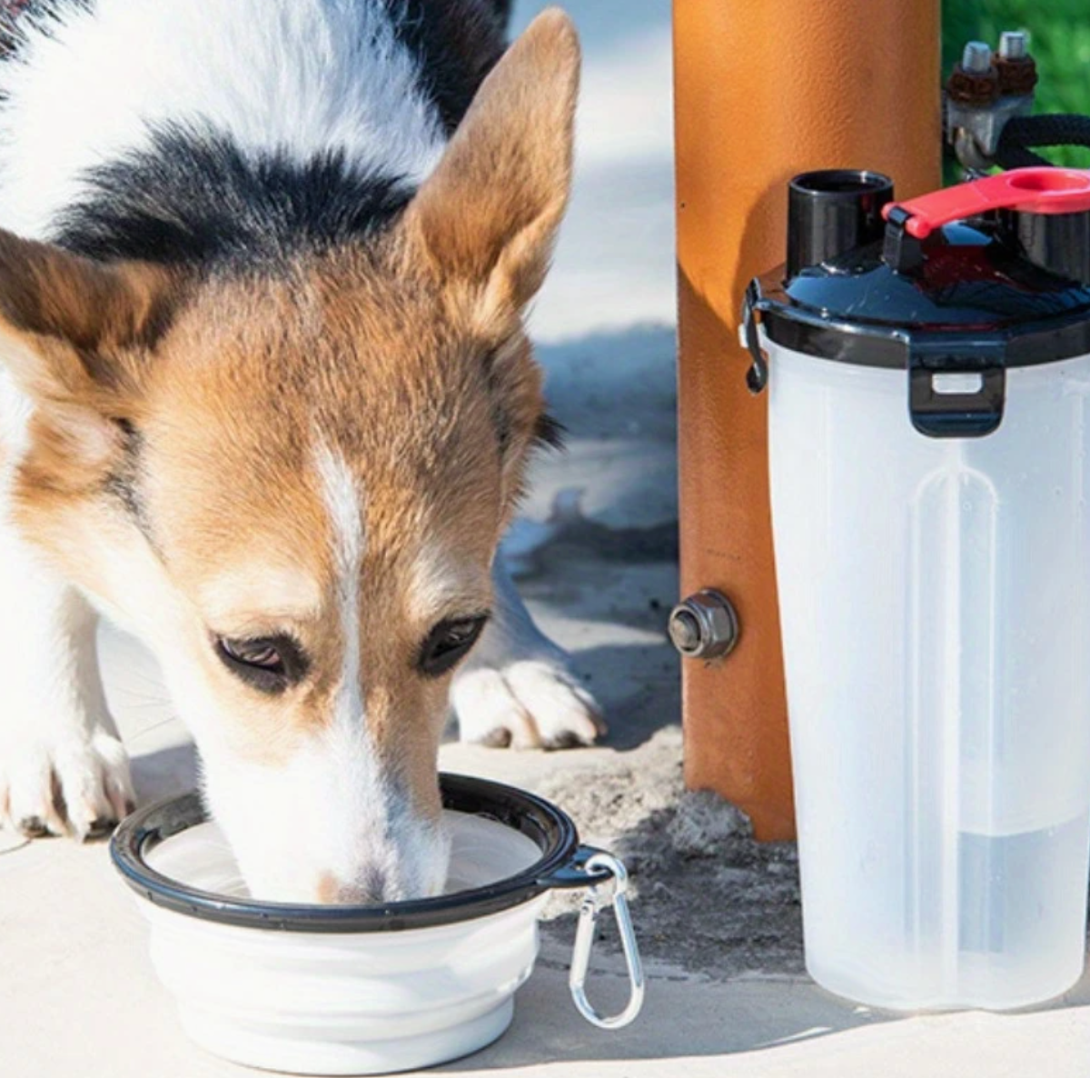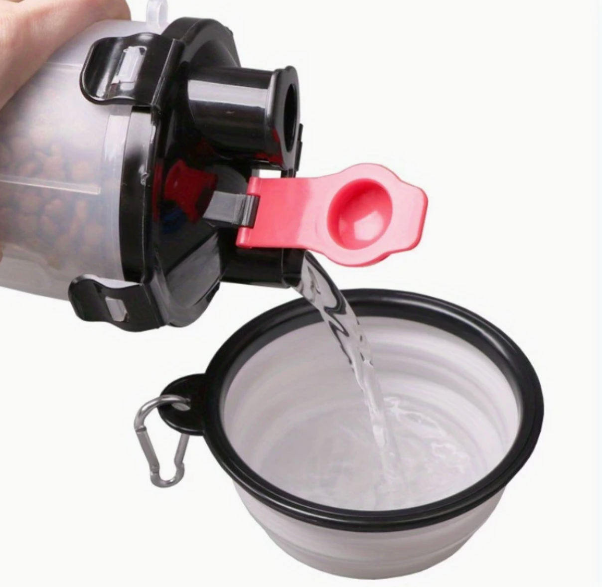 Designed for convenience, it includes a travel container plus two collapsible bowls, making it easy to serve meals and water anywhere.