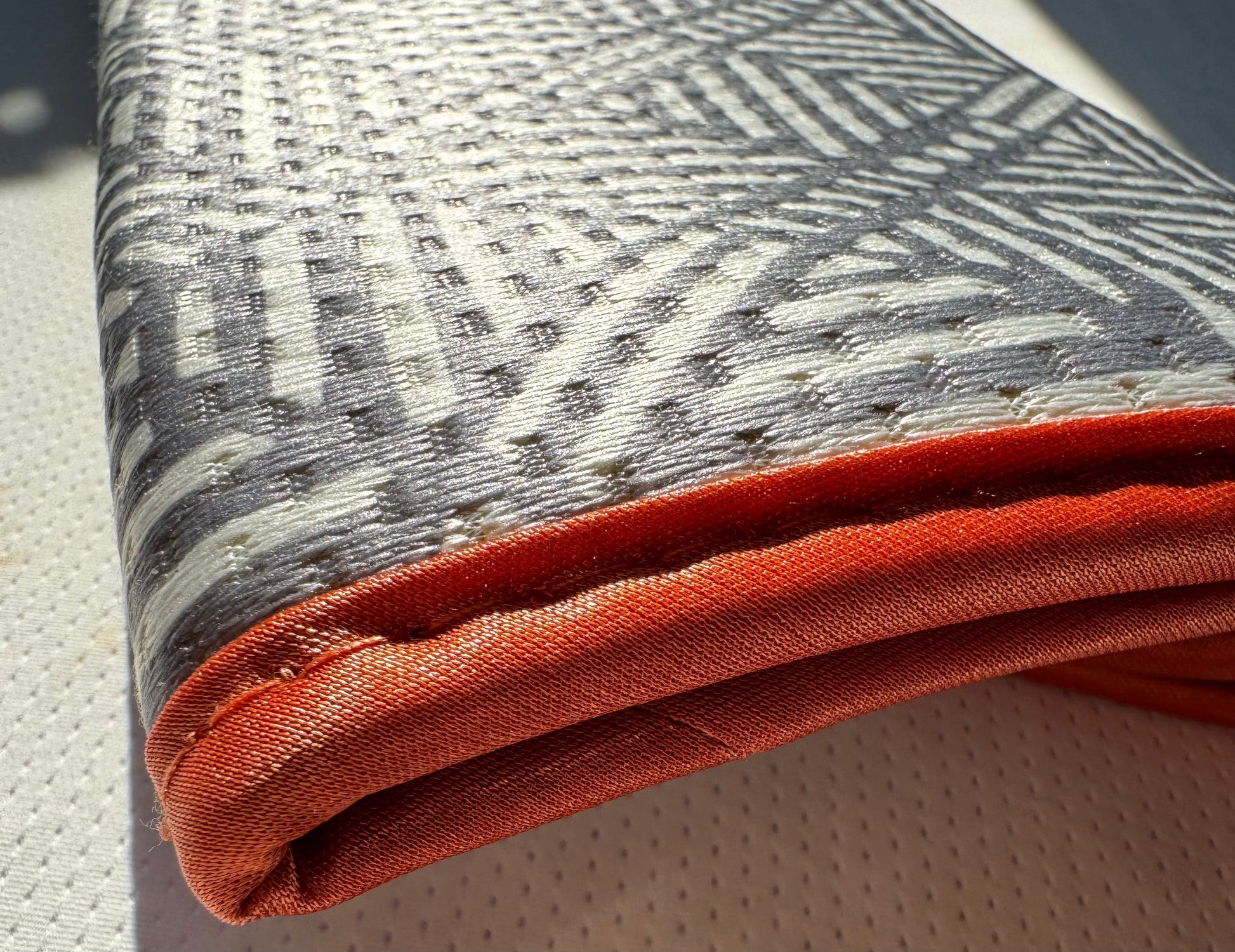 Keep mealtime fun and tidy with this bowl mat featuring a cool pattern and a vibrant orange trim.