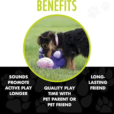 • 3-in-1 squeaker will crunch, squeak, and even chuckle