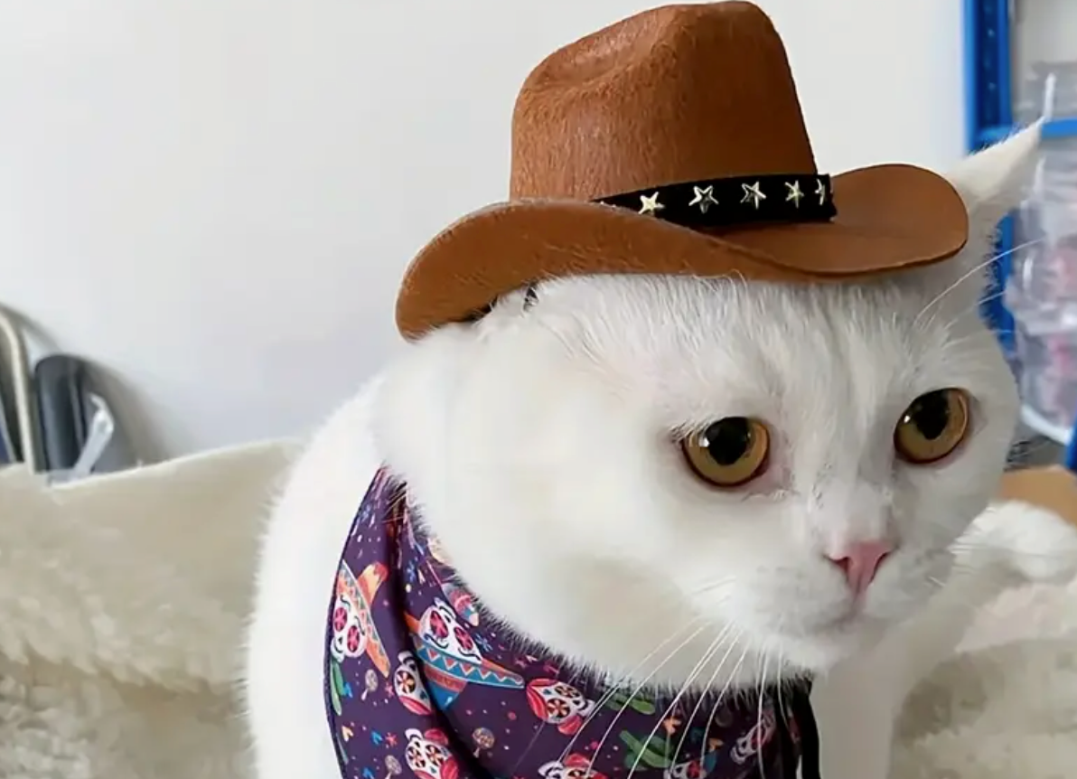 Add a touch of western charm to your dog's look with this brown cowboy/girl hat designed for small dogs.