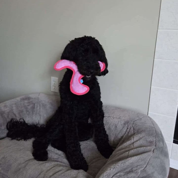 DURAFORCE® toys are made with durability in mind! Each toy is engineered with plastic-coated polyester fibers that are woven into a durable, thick mat. The edges are protected by industrial grade webbing and sewn multiple times for added reinforcement. They squeak, they float and they’re machine washable. With vibrant colors and a variety of shapes and sizes, DURAFORCE® dog toys are sure to provide hours and hours of canine fun! DURAFORCE® toys are built to withstand rigorous interactive play, not aggressive chewing. We use quality, durable materials, but this product is still a “soft” plush dog toy that can be damaged from chewing. Care for your dog like you would your child. Do not allow your pet to swallow any part of ANY brand of dog toy.
