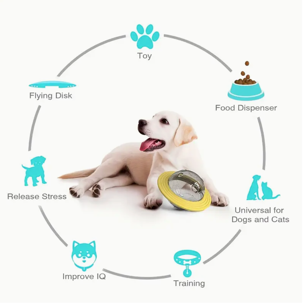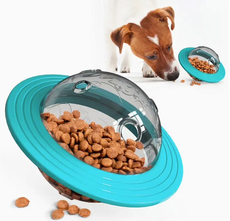 Shaped like a flying space ball, this tough, leak-proof toy dispenses snacks as your pup plays, keeping them engaged, active, and rewarded.