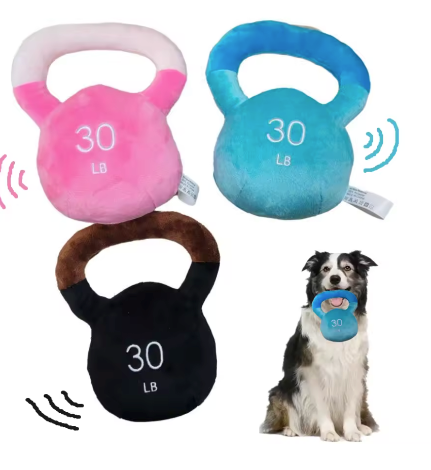 Get ready for some pup-ercise with our kettlebell shaped dog squeaky toys!