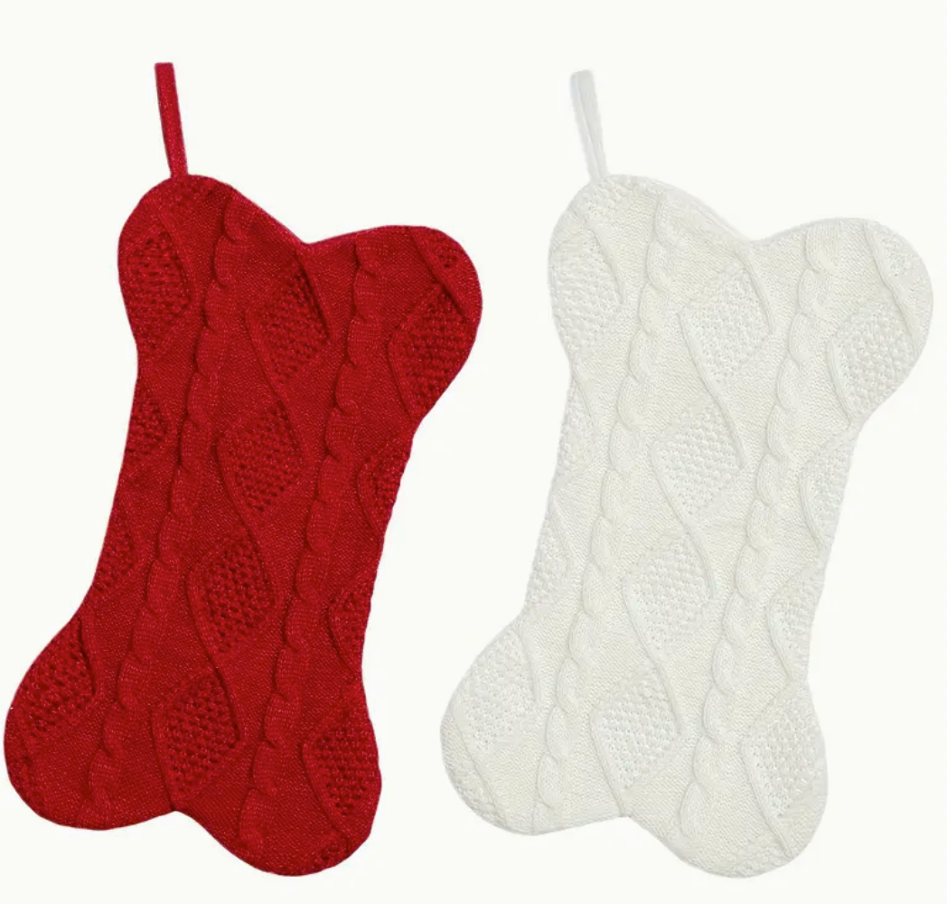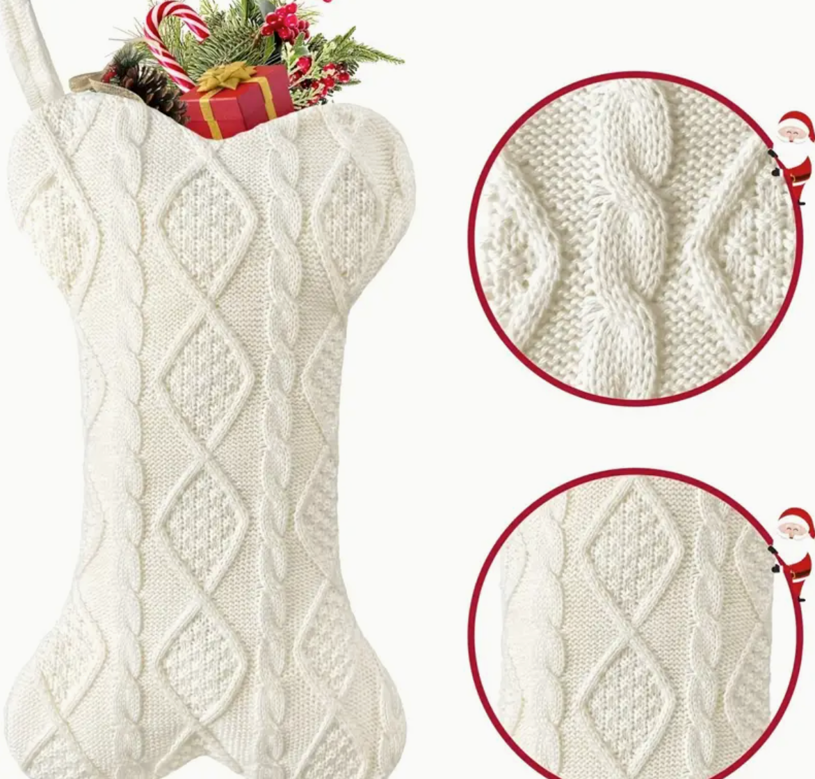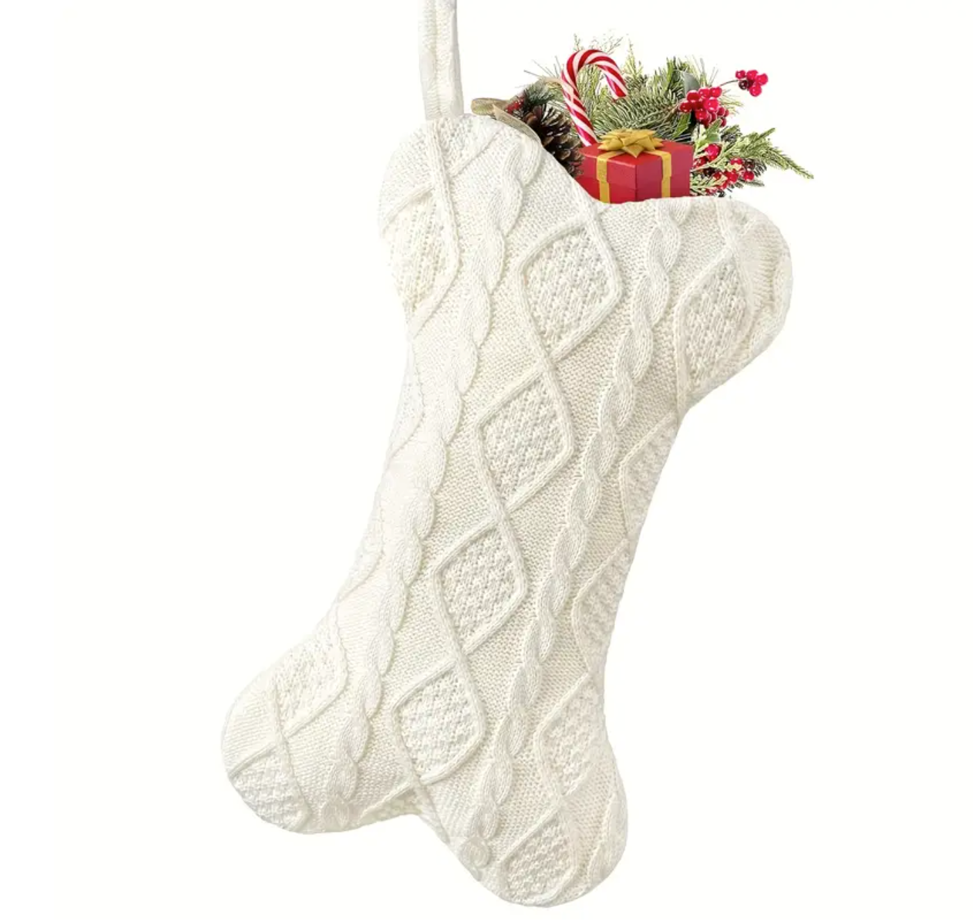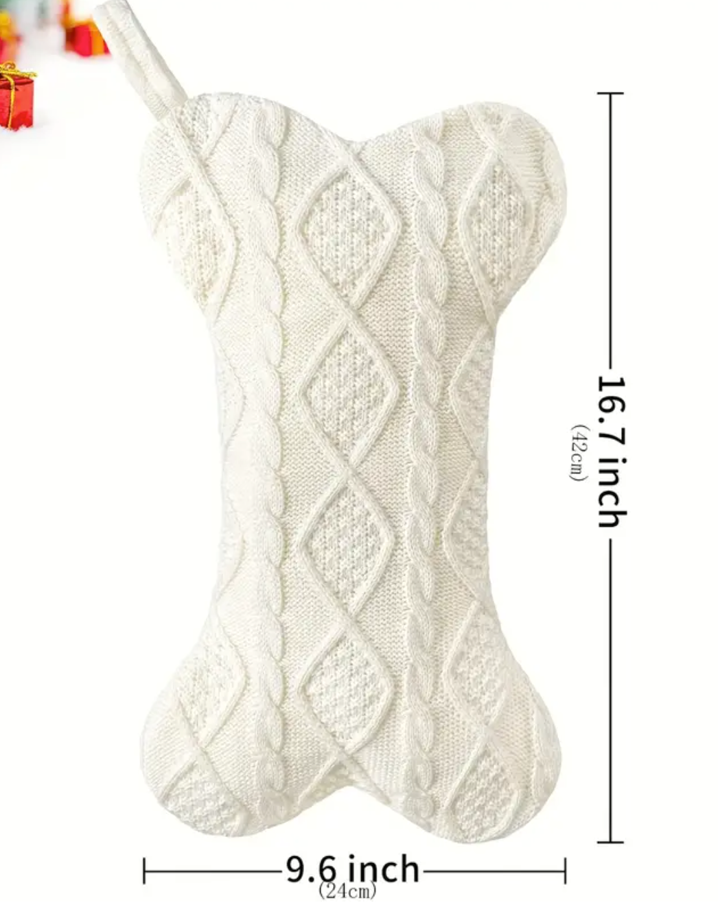 Celebrate the holidays with this charming Knit White Christmas Stocking, designed in a playful bone shape perfect for your furry friends.
