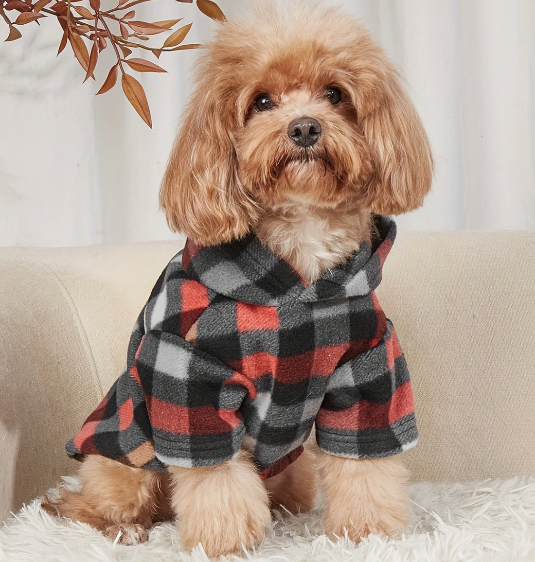 Keep your furry friend cozy and stylish with this plaid hoodie designed for both dogs and cats.
