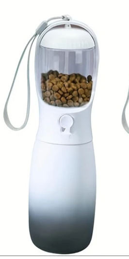 Keep your pet hydrated and nourished on the go with this convenient water bottle and food storage combo.